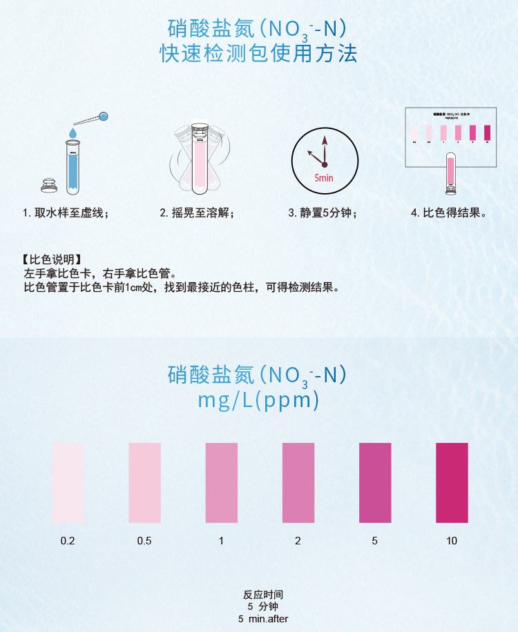 3.本產(chǎn)品只適用于無機氮檢測,如果水樣中含有有機氮,本產(chǎn)品無法檢測出。