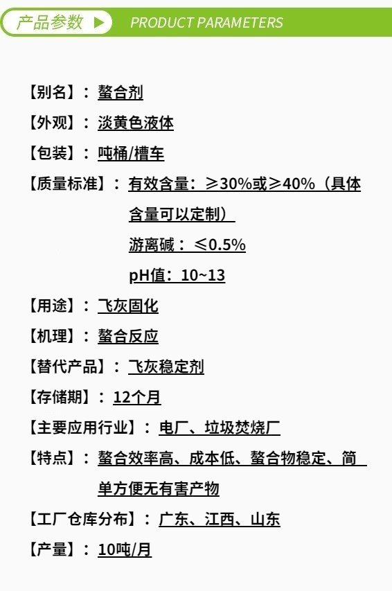 飛灰螯合劑產(chǎn)品特點(diǎn)
