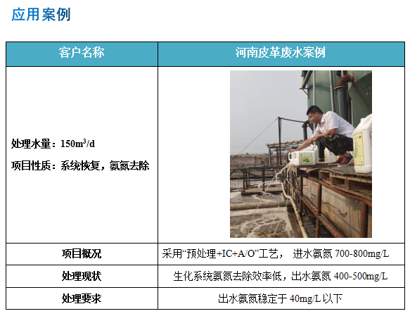 以上皮革廢水的特點使得皮革廢水的處理難度較大,其難度在難度分級中處于中上等。企業(yè)尤其是在氨氮、總氮減排方面面臨巨大的壓力。針對這一問題,目前最為安全有效、長期穩(wěn)定的方式就是對系統(tǒng)進行生物強化。研究顯示,日常運行過程中,定期投加菌劑,可以更好的提高系統(tǒng)的耐沖擊能力,但目前大多數(shù)廠家,通常是在系統(tǒng)受到?jīng)_擊時選擇投加大量菌劑,無論是哪種情況,選對菌劑很重要。庫巴魯®氨氮激活菌201 ,一款氨氮去除率高達(dá)99.9%的硝化細(xì)菌產(chǎn)品,有效提高系統(tǒng)的硝化能力,增加生化系統(tǒng)抗沖擊性,3天見效,15達(dá)標(biāo)。小小的細(xì)菌,大大的能量!